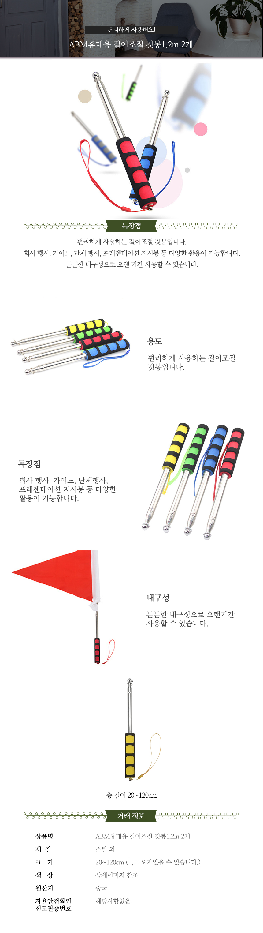 ABM휴대용 길이조절 깃대봉 1.2m 2개