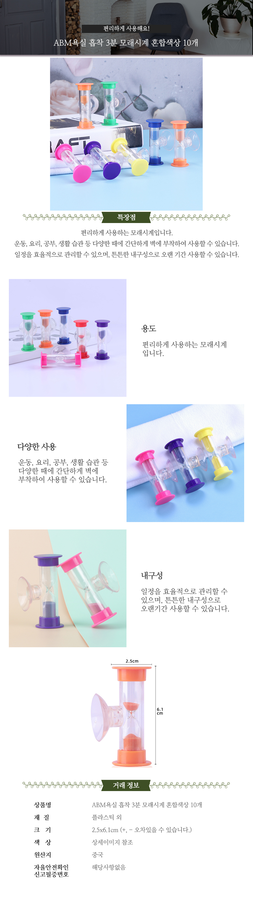 ABM욕실 흡착 3분 모래시계 혼합색상 10개